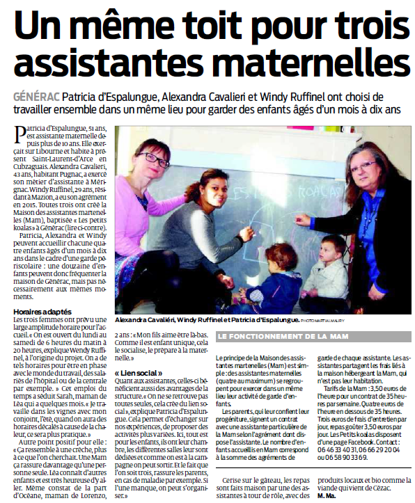 Notre Mam est composée de trois assistantes maternelles professionnelles agréées par le conseil général: